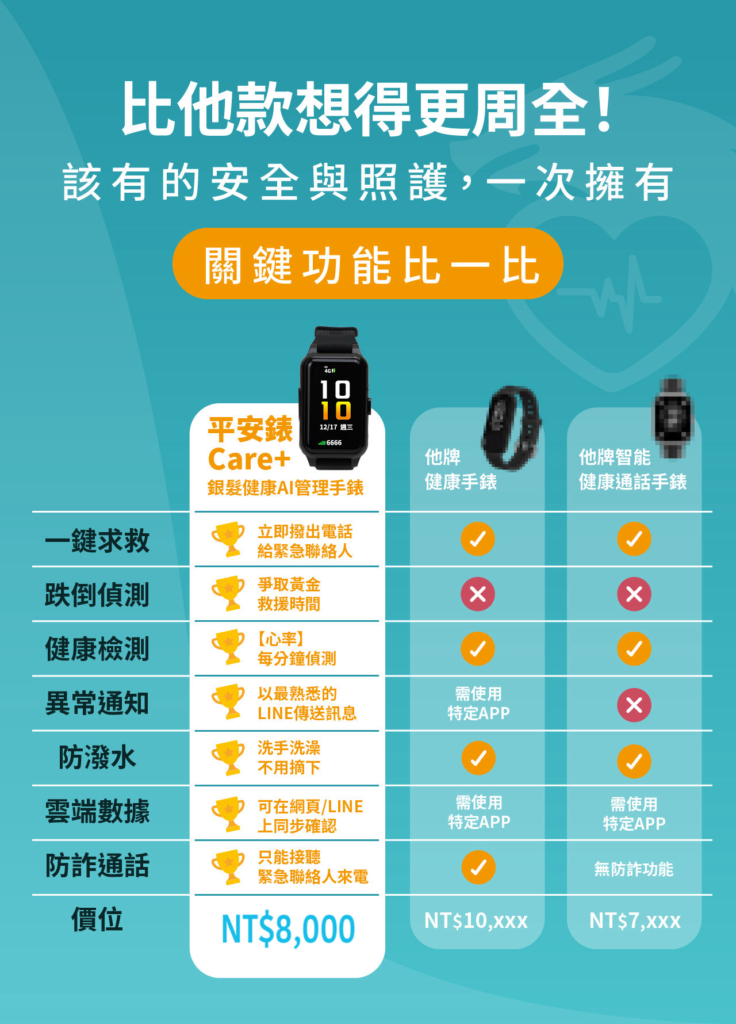 一份送給長輩最長情的禮物!專為長輩研發的「手腕上的守護者」,用 「24 小時專業監測」給家人最暖心的陪伴,用「即時通報」給你最踏實的安心感。